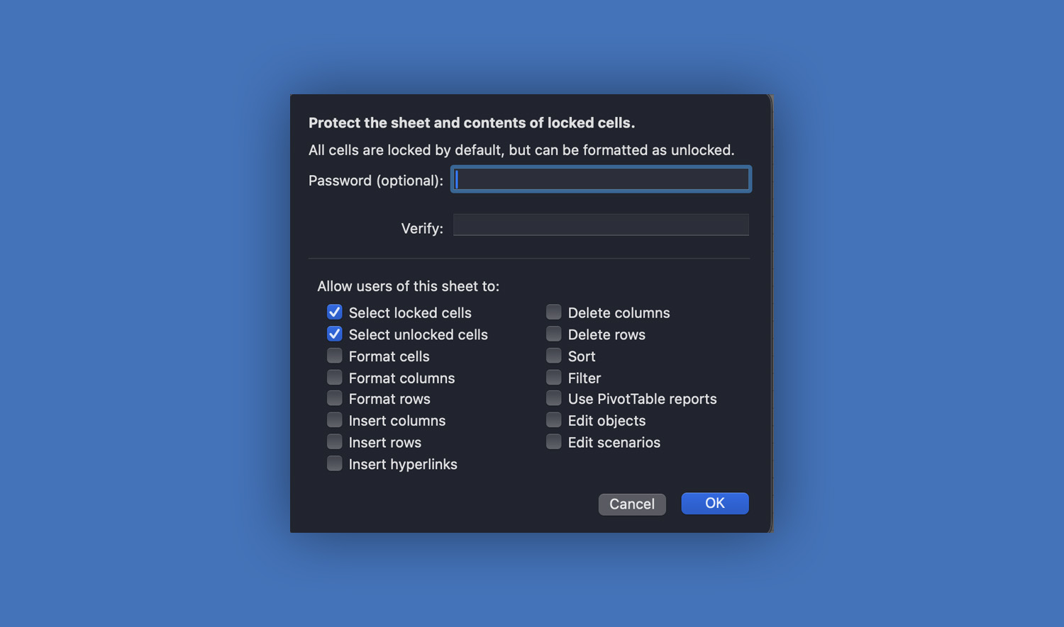 If you set a password, confirm it. Your worksheet is now protected.